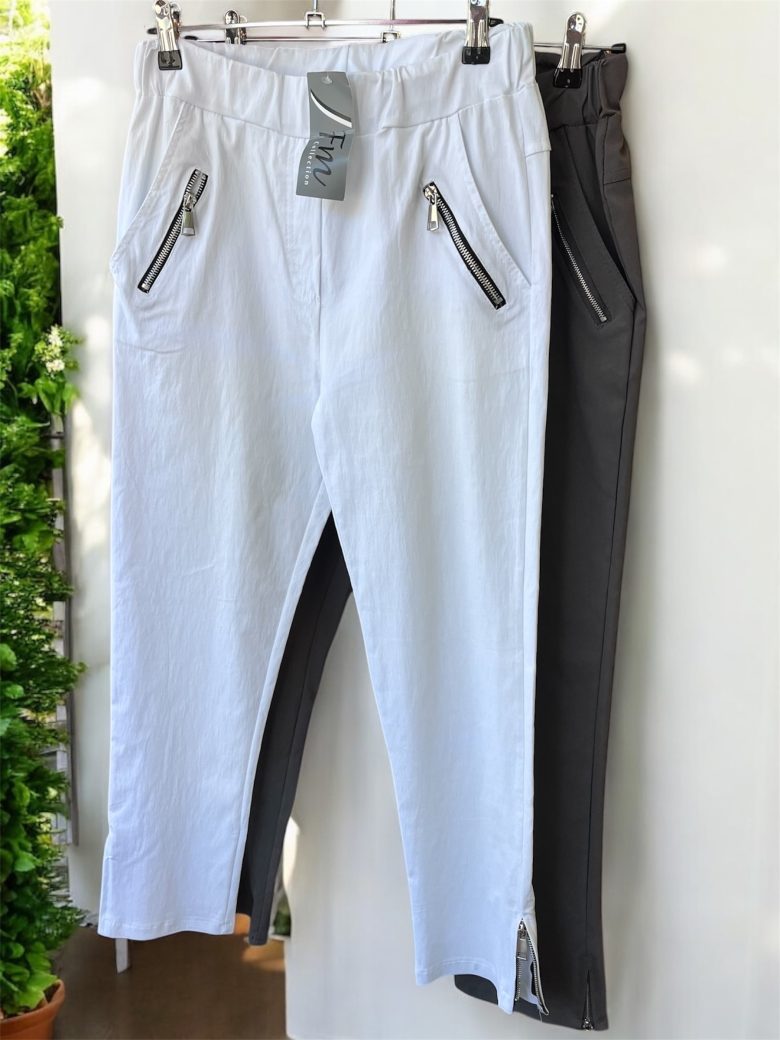 These FM Collection Trousers are comfortable with a lightweight stretchy fabric, making it breathable and comfortable to wear. Zip detailing right underneath the pockets and by the ankles. It is the perfect addition to any wardrobe.