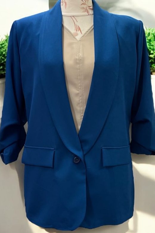 Smart-looking Fashionable Blazer complete with ruched sleeves, and pocket detailing on the front.