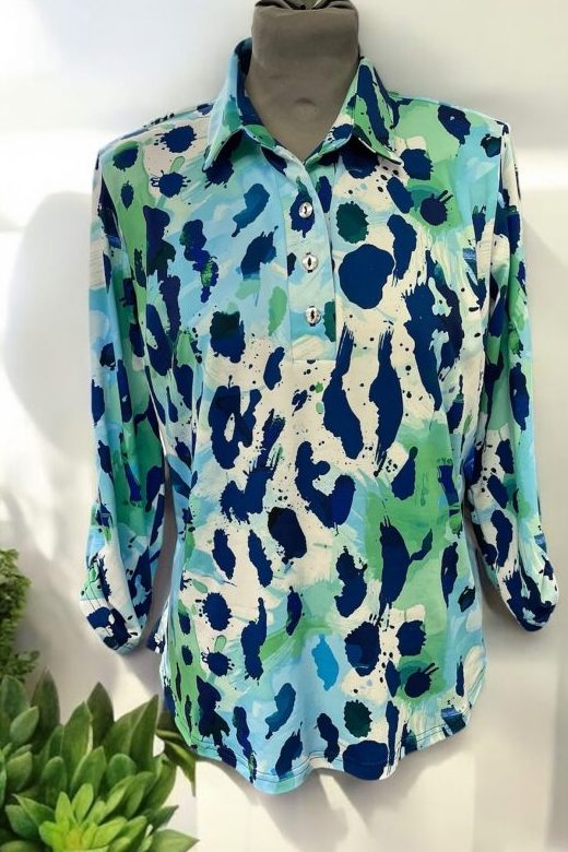 Animal Print Blouse with a collared neckline, buttons along the front, and adjustable sleeves, easy to style for an everyday and occasion look.