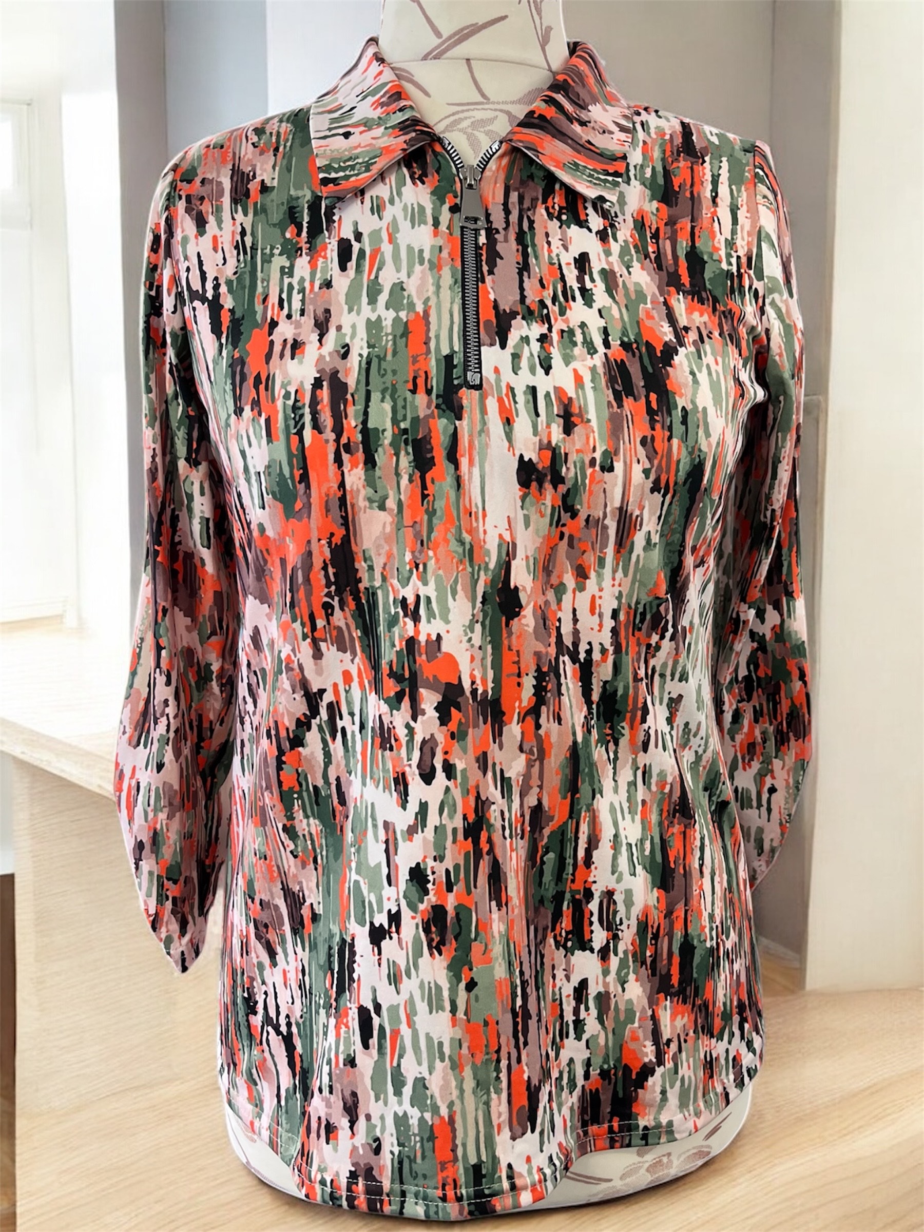 Beautiful YEW Blouse with a high collared neckline, a half-zip design, making it easy to style for an everyday and occasion look.