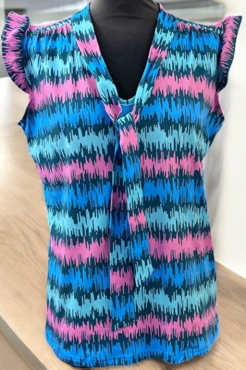 Paint-Splatter Patterned Blouse with a v-neck, accented sleeve cuffs, easy to style for an everyday and occasion look.